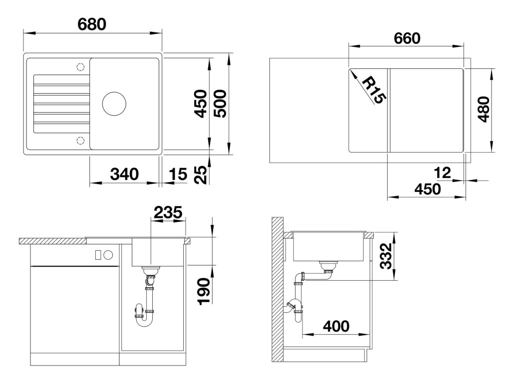 Rozměr dřezu (D x Š): 680 x 500 mm