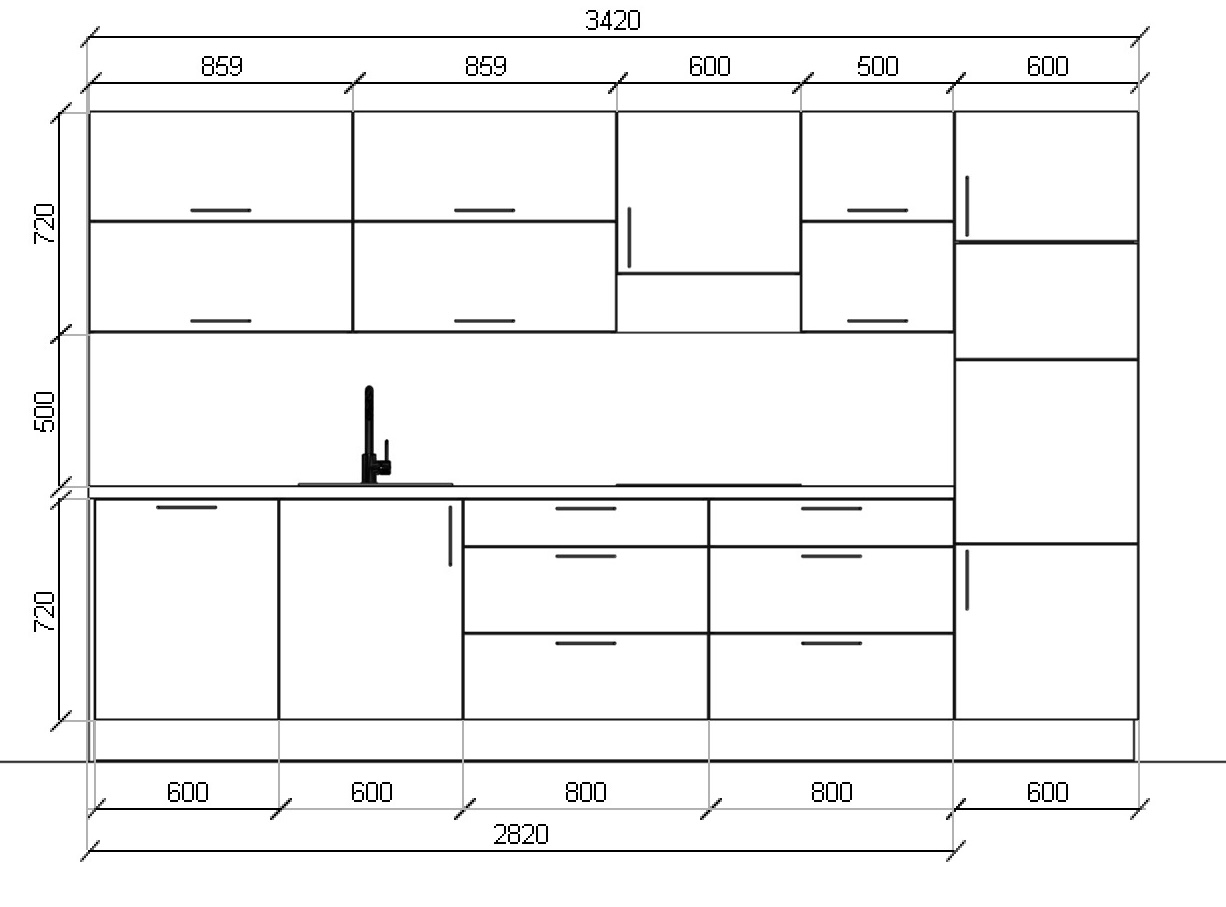 - Celková délka kuchyně 3420 mm