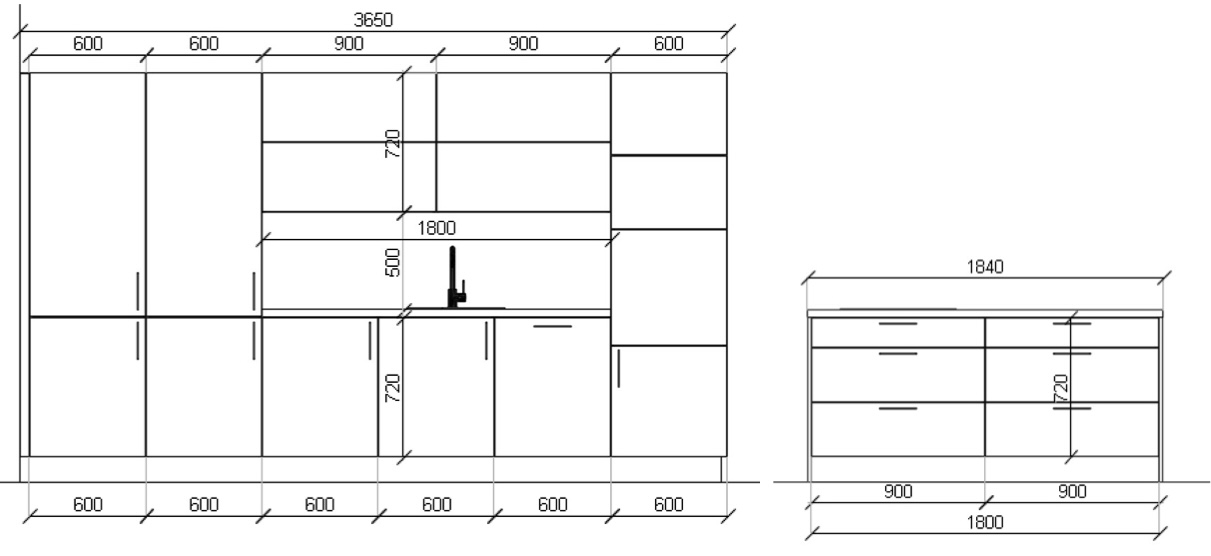 - Celková délka kuchyně 3650 mm